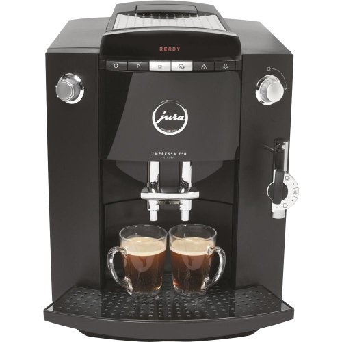 Jura meets the demand for a back-to-basics automatic coffee center with the Jura Impressa F50 Classic. From crema coffee and classic espresso to cappuccino and latte macchiato, the Impressa F50 Classic produces a true bean-to-cup experience while offering the ultimate ease-of-use. Featuring an intuitive rotary selector and plain text display, the Impressa F50 Classic lets users brew perfect coffee beverages just the way they like them. Two programmable aroma levels, each with three coffee strengths, provide a variety of options to brew coffee to personal tastes. This automatic coffee Center grinds, tamps, brews, and self-cleans in less than one minute. Choose one or two cups by pressing one of two preparation buttons and the conical steel burr grinds kicks into action, freshly grinding whole coffee beans to the desired consistency. 15 bars of pressure push water through the professional-grade thermoblock system, creating the ideal environment for extracting a perfect coffee beverage. Integrated Clearyl Blue filter cartridge removes impurities from water and eliminates the need for decalcifying. Impressa F50 Classic features a removable 64-ounce water container, 8-ounce bean hopper and height adjustable coffee spout to accommodate larger cups. It is equipped with a milk frother for frothing or steaming milk and it also produces hot water for tea and more.