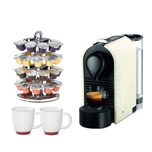 Nespresso U-C50 Espresso Machine in Pure Cream w/ 2 Piece 12 oz. Halo Bistro Wide Body Coffee Cup and Nifty Nespresso Coffee Carousel