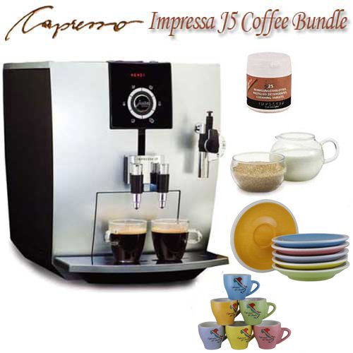 Do you dream of doppio? Crave the perfect crema? This 18-bar coffee center has a flair for the authentic, delivering amazingly aromatic drinks with flawless style and taste. Every detail is masterpiece quality, from the rich platinum-metallic and chrome treatment to the dramatic matte black panels. This Set Includes * Capresso Impressa J5 Refurbished Coffee Espresso Center in Matte Black* Bodum Tastea Tea Set White* 25-Pack Cleaning Tablets for All Capresso/Jura Automatic Coffee Centers* Adagio Cream & Sugar Set